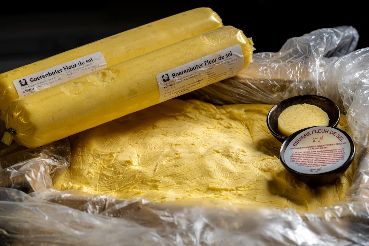 Deze heerlijke ambachtelijke boerenboter uit de polders van de Krimpenerwaard wordt gemaakt van volle, verse melk. De boter wordt in tegenstelling tot fabrieksboter ouderwets gekarnd. Deze boerenboter is authentiek en vol van smaak. Samen met het Fleur de Sel zeezout, maakt deze boter tot een hoogwaardig product. Verkrijgbaar in rol van 500 gr. Ook verkrijgbaar in bulk ongezouten.