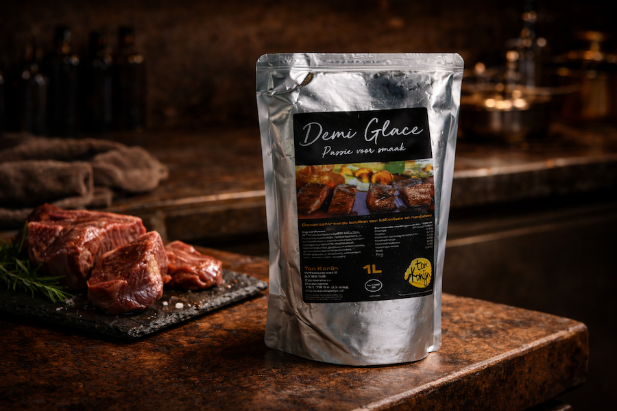 Door het gebruiken van deze Demi Glace zet u niet alleen een goede kwaliteit jus neer, maar bespaart u ook een hoop tijd en ruimte in uw keuken.